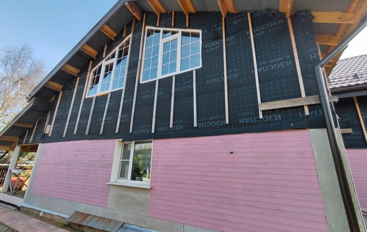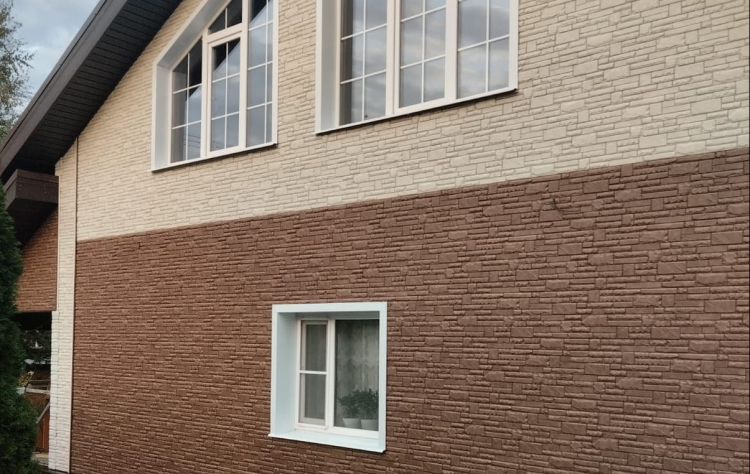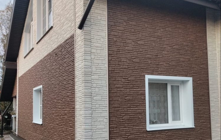 Дом 10x12, монтаж фасадных панелей Docke FELS в деревне Ситенка